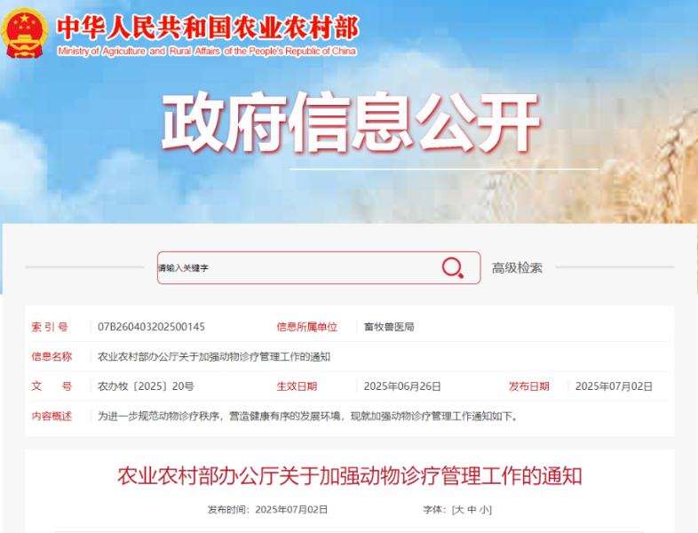 农业农村部办公厅关于加强动物诊疗管理工作的通知!